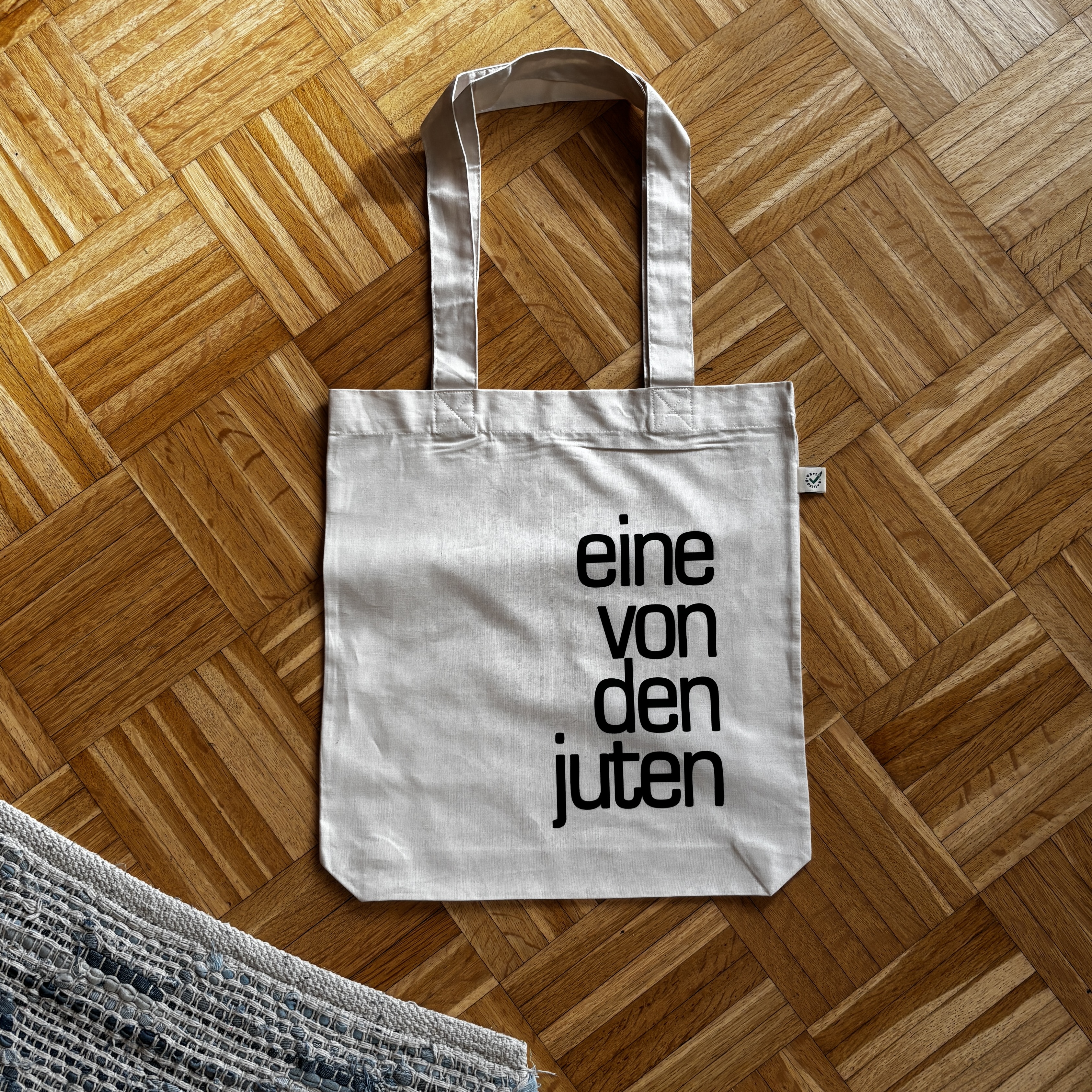 Durch die nachhaltige Herstellung und das minimalistische Design ist diese Tote Bag die ideale Wahl für alle, die Wert auf Stil und Umweltbewusstsein legen. Sie eignet sich perfekt als Geschenk, als praktische Einkaufstasche oder als moderner Alltagsbegleiter. Die Kombination aus natürlichem Beige und dem schwarzen Druck macht sie zu einem zeitlosen Accessoire, das zu jedem Outfit passt.