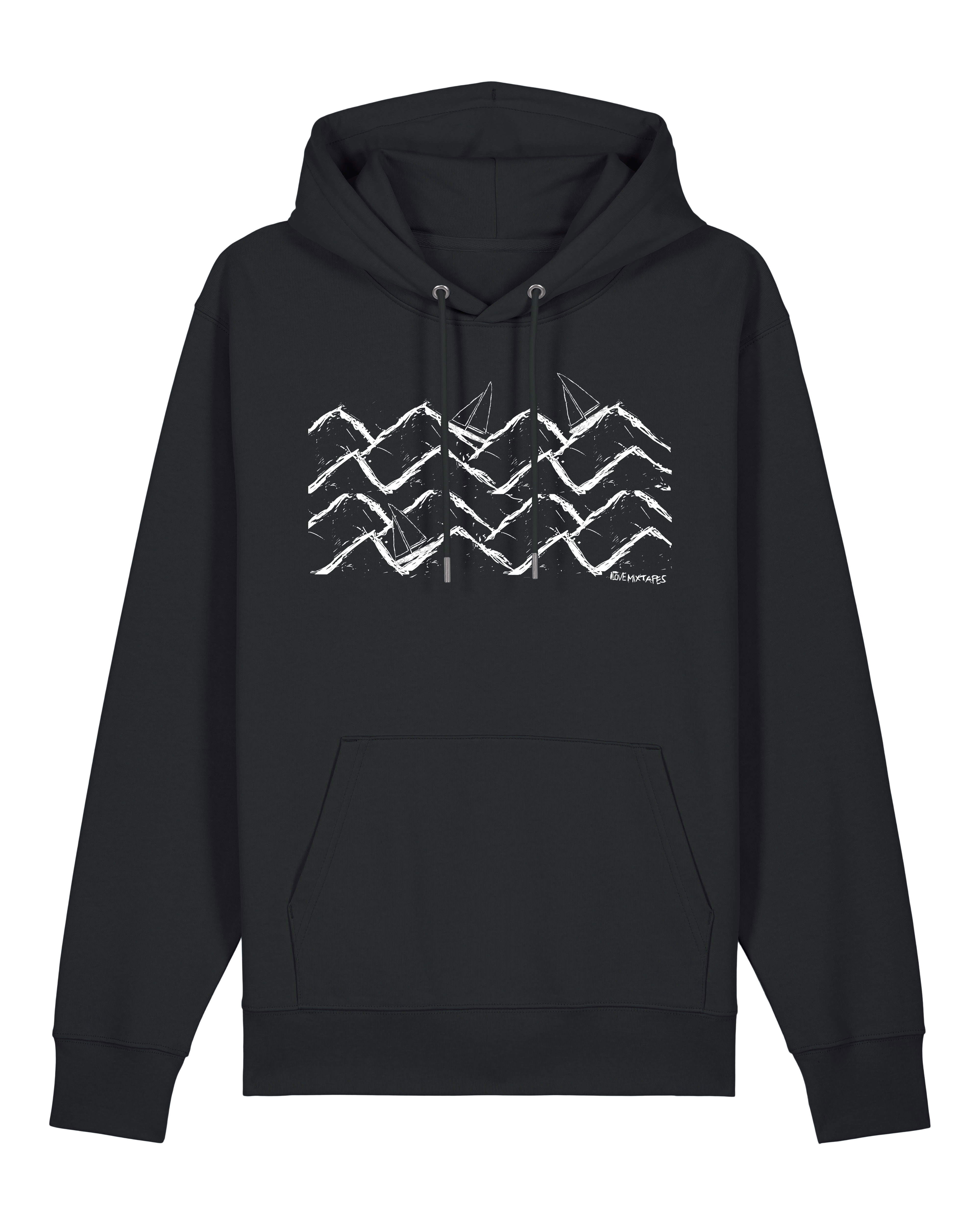 Das handgezeichnete Motiv aus Wellen und Segelbooten bringt Küstenfeeling in deinen Alltag und macht diesen Segel Hoodie zum idealen Begleiter für alle, die das Meer lieben.