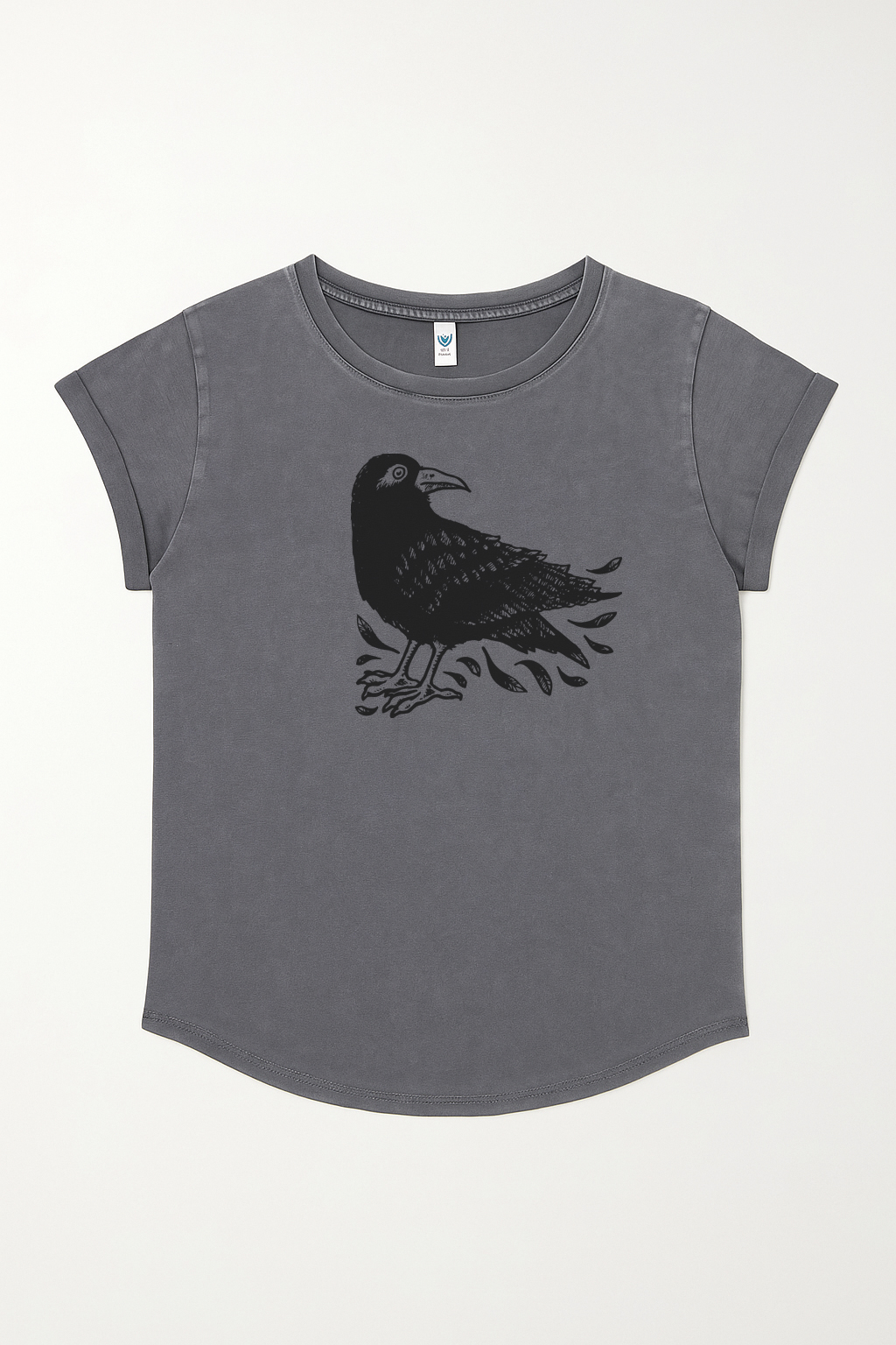 Das Damen Bio-T-Shirt „Raven“ vereint ausdrucksstarkes Design mit nachhaltiger Mode. Das exklusive Raben-Motiv stammt vom bekannten Comiczeichner Christian Bögle und überzeugt durch seine detailreiche, handgezeichnete Umsetzung. Der Rabe wird hier stilvoll in Szene gesetzt und verleiht deinem Outfit eine besondere Note.