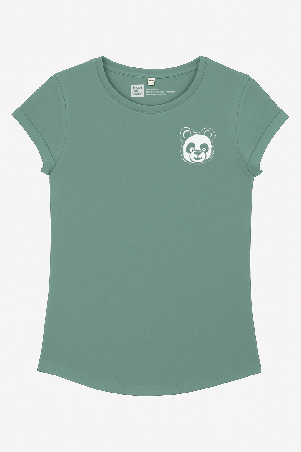Auf der linken Brust ist ein kleines, detailreiches Pandagesicht aufgebracht. Der Druck erfolgt per hochwertigem Siebdruck-Transfer und wird mit einer Textilpresse dauerhaft fixiert. Das Motiv ist langlebig, farbintensiv und behält seine weiße Farbe auch nach häufigem Waschen.