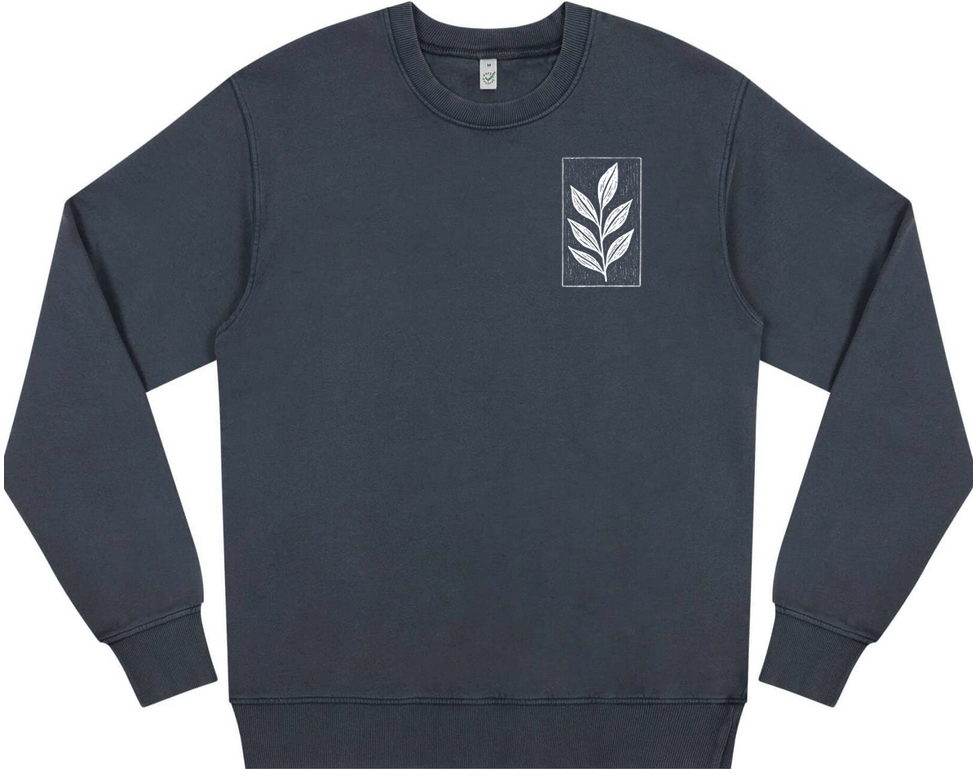 Dieses Sweatshirt vereint minimalistisches Design, Handwerkskunst und Nachhaltigkeit. Der Linolschnitt-inspirierte Siebdruck „Der Zweig“ wird von mir in liebevoller Handarbeit auf jedes einzelne Stück gedruckt – jedes Teil ist somit ein echtes Unikat.
