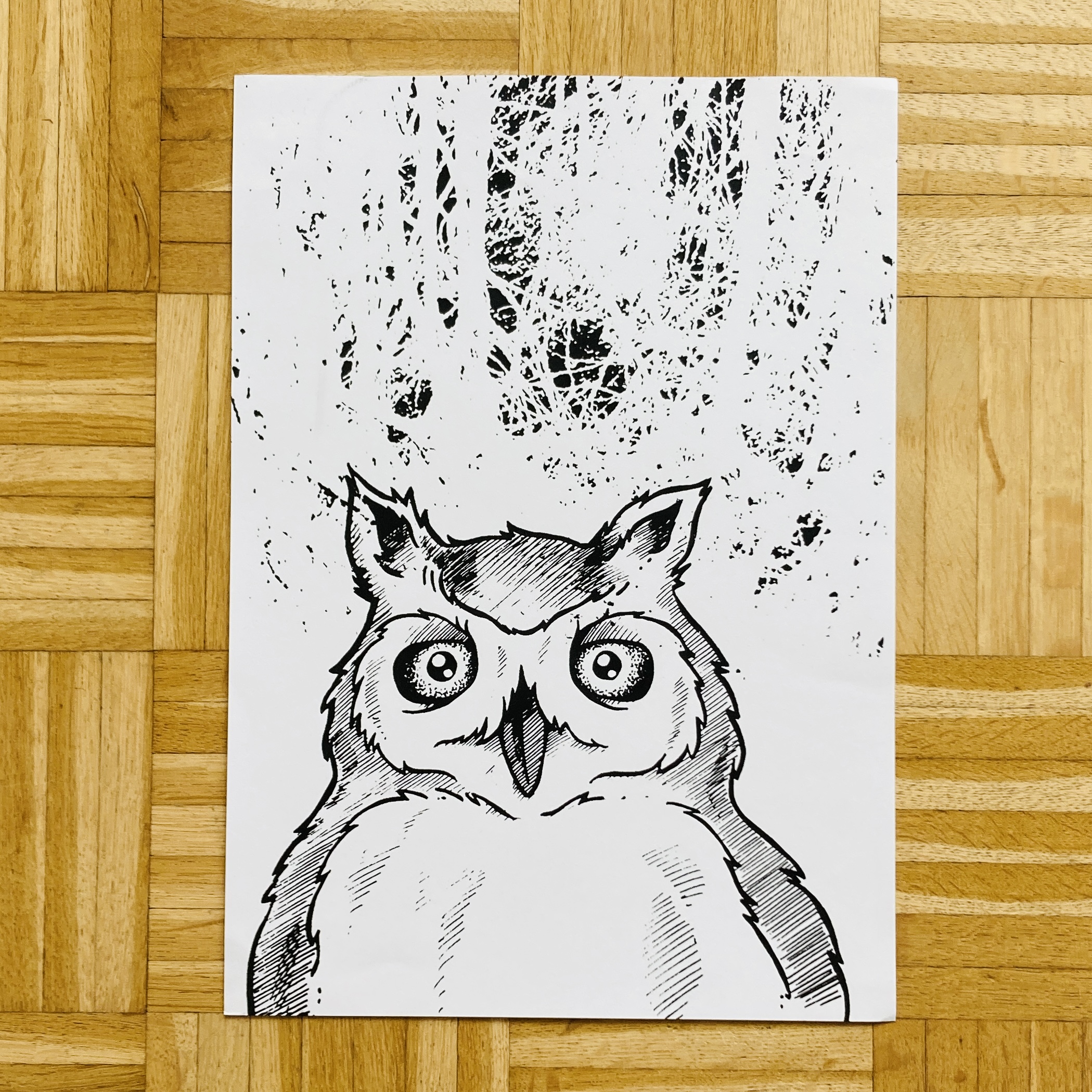 Eule im Wald Kunstdruck - A3 Siebdruck