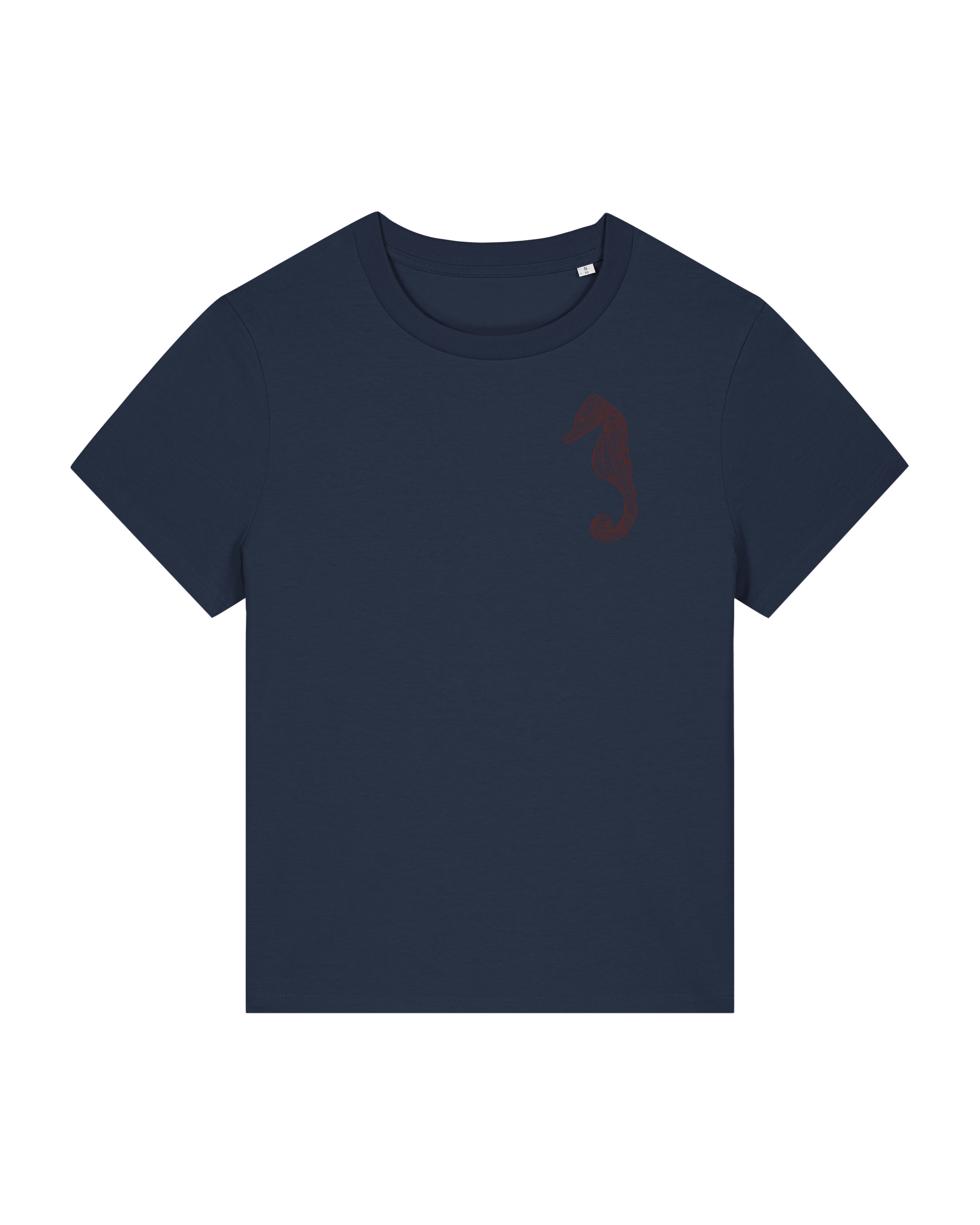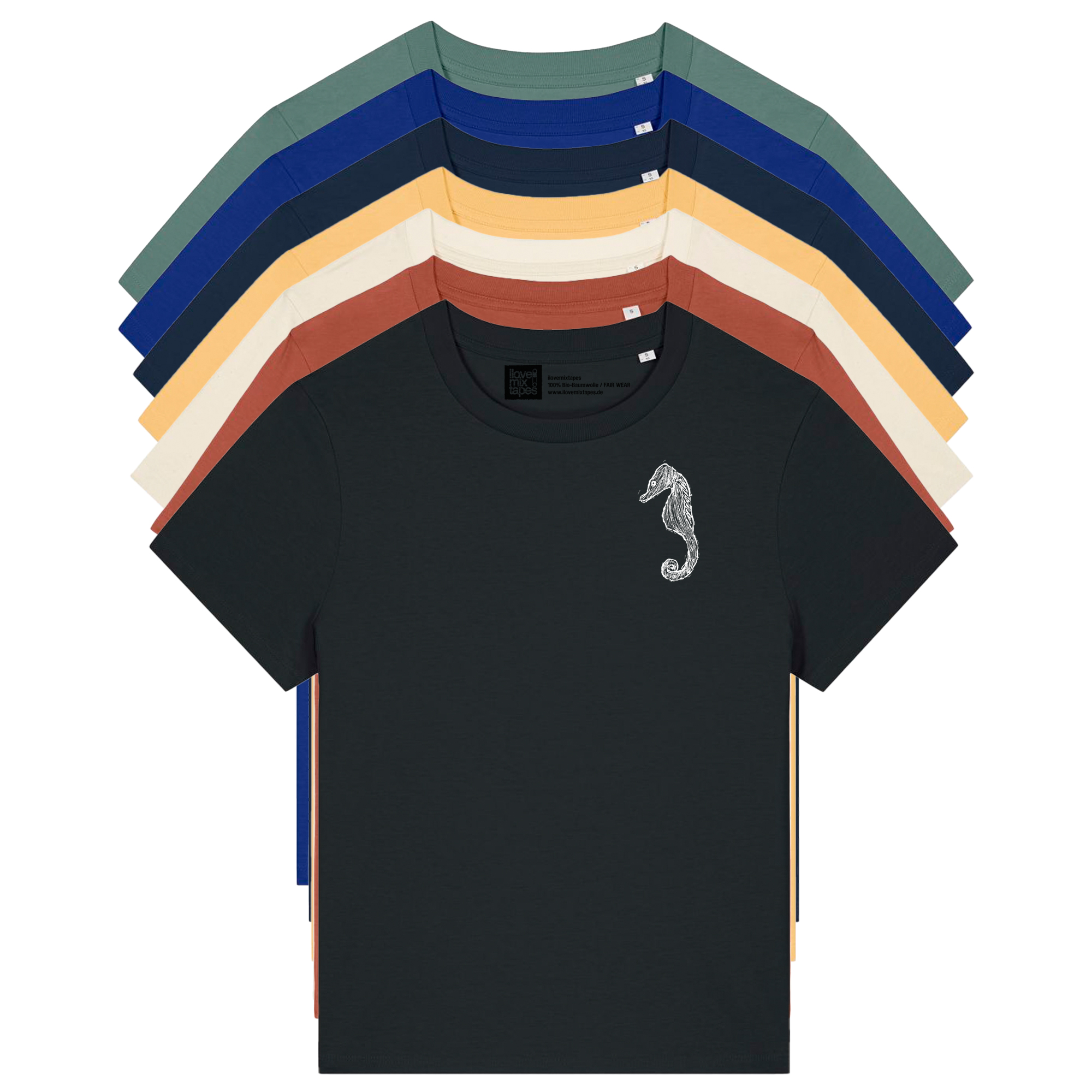 Nachhaltiges Damen T-Shirt mit Seepferdchen-Motiv – zeitlos, bequem & fair produziert