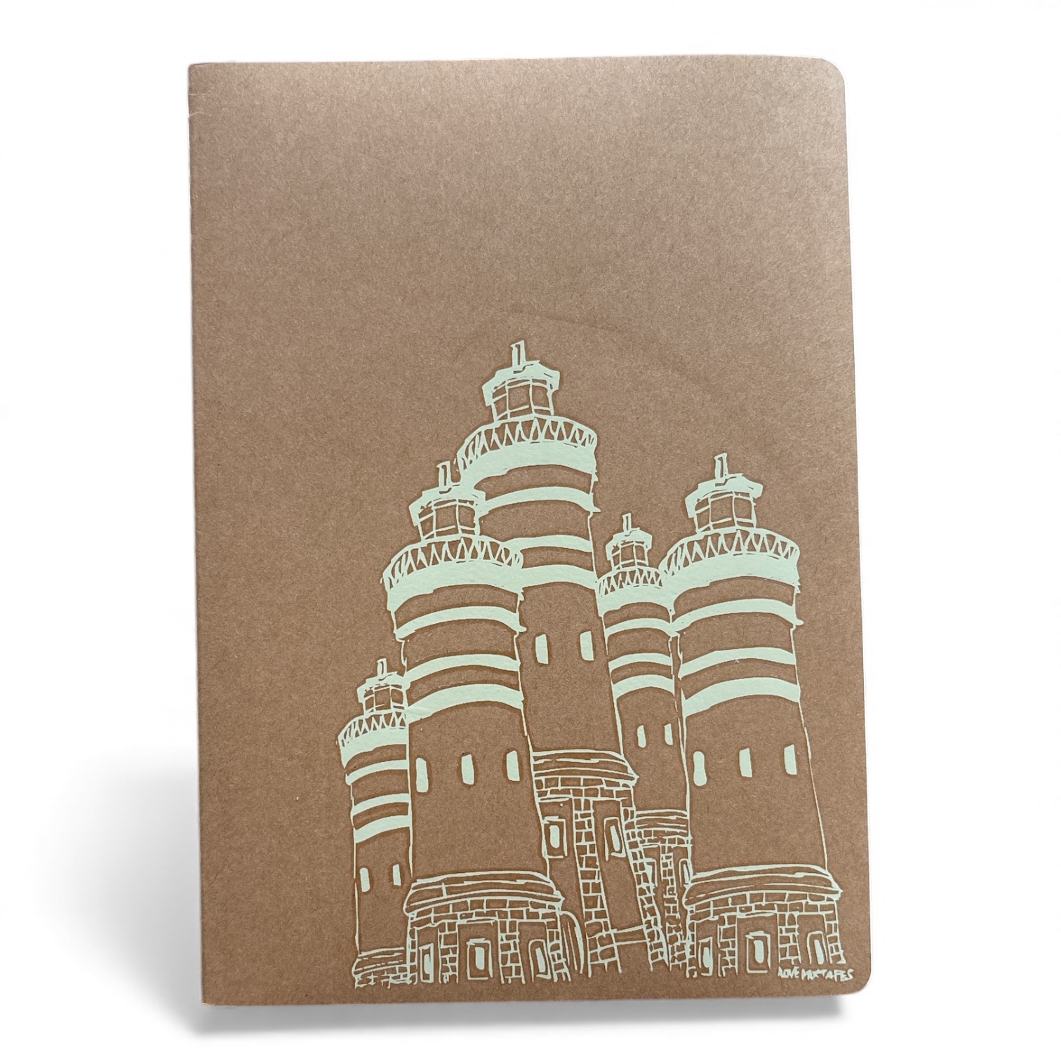 Notizbuch A5 | Leuchttürme | Handbedruckt im Siebdruck | Kraftpapier | Gepunktet | 32 Seiten | FSC-zertifiziert | Handmade