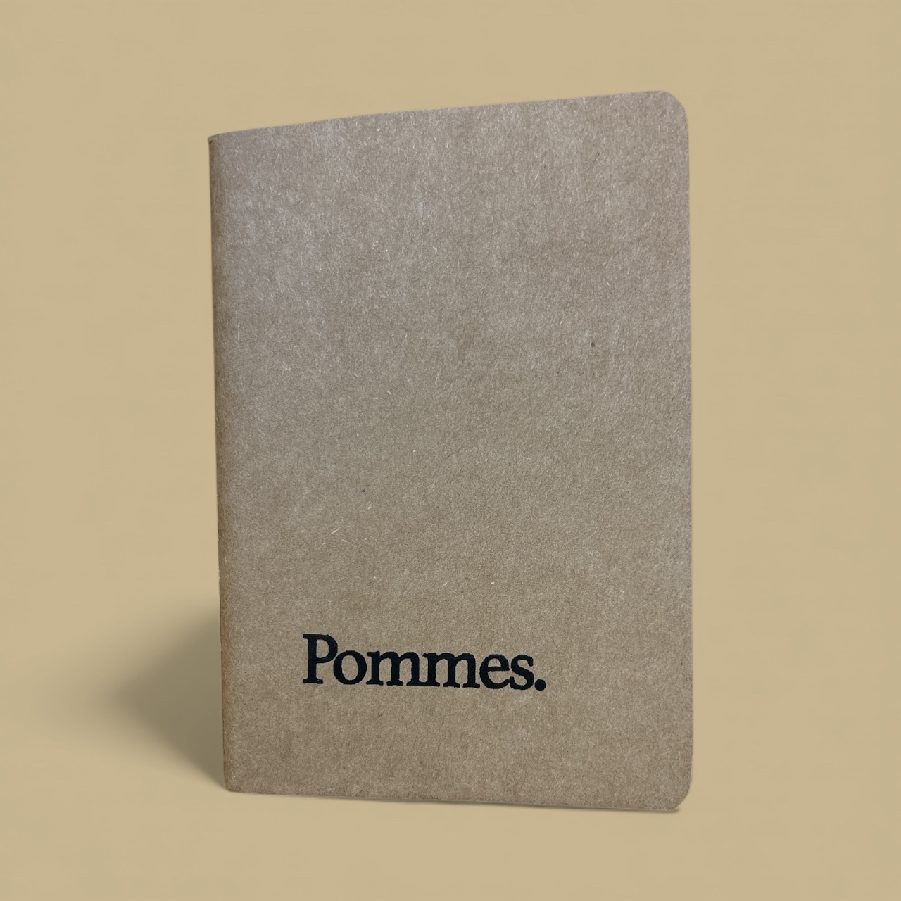 Dieses handbedruckte A6-Notizbuch verbindet schlichtes, modernes Design mit nachhaltigen Materialien und echter Handarbeit. Der Umschlag besteht aus robuster, recycelter Kartonage in natürlichem Braunton und wird von mir in meinem Atelier einzeln im klassischen Siebdruckverfahren bedruckt. Der minimalistische „Pommes.“-Schriftzug setzt einen humorvollen, klaren Akzent und macht jedes Heft zu einem individuellen kleinen Statement-Piece.