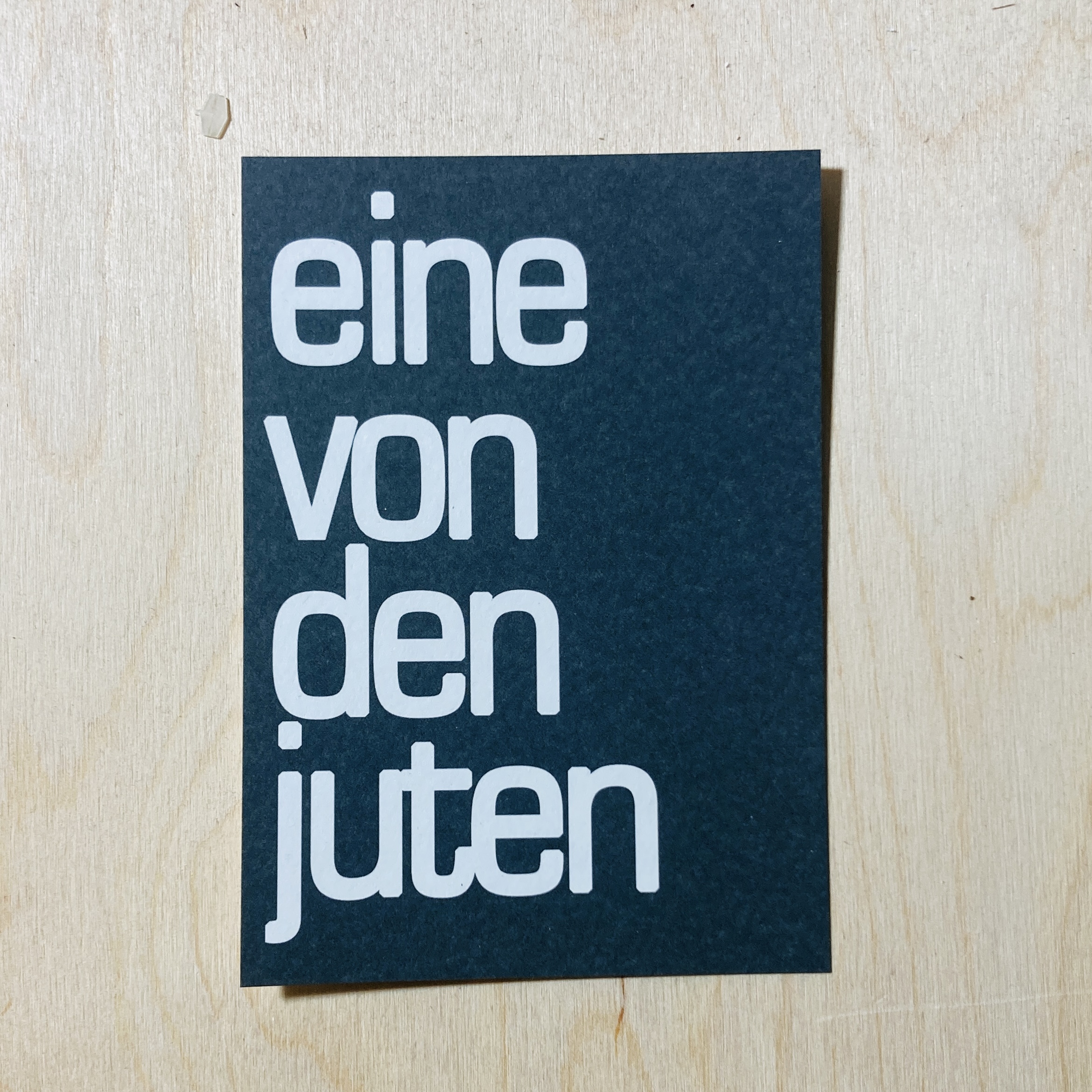 Für alle, die wissen, was sie wert sind – oder für die, die man einfach mal loben möchte. Die Postkarte „eine von den juten“ kombiniert Berliner Schnauze mit klarer Typografie auf dunklem Hintergrund. Charmant, direkt und absolut verschenkwürdig.