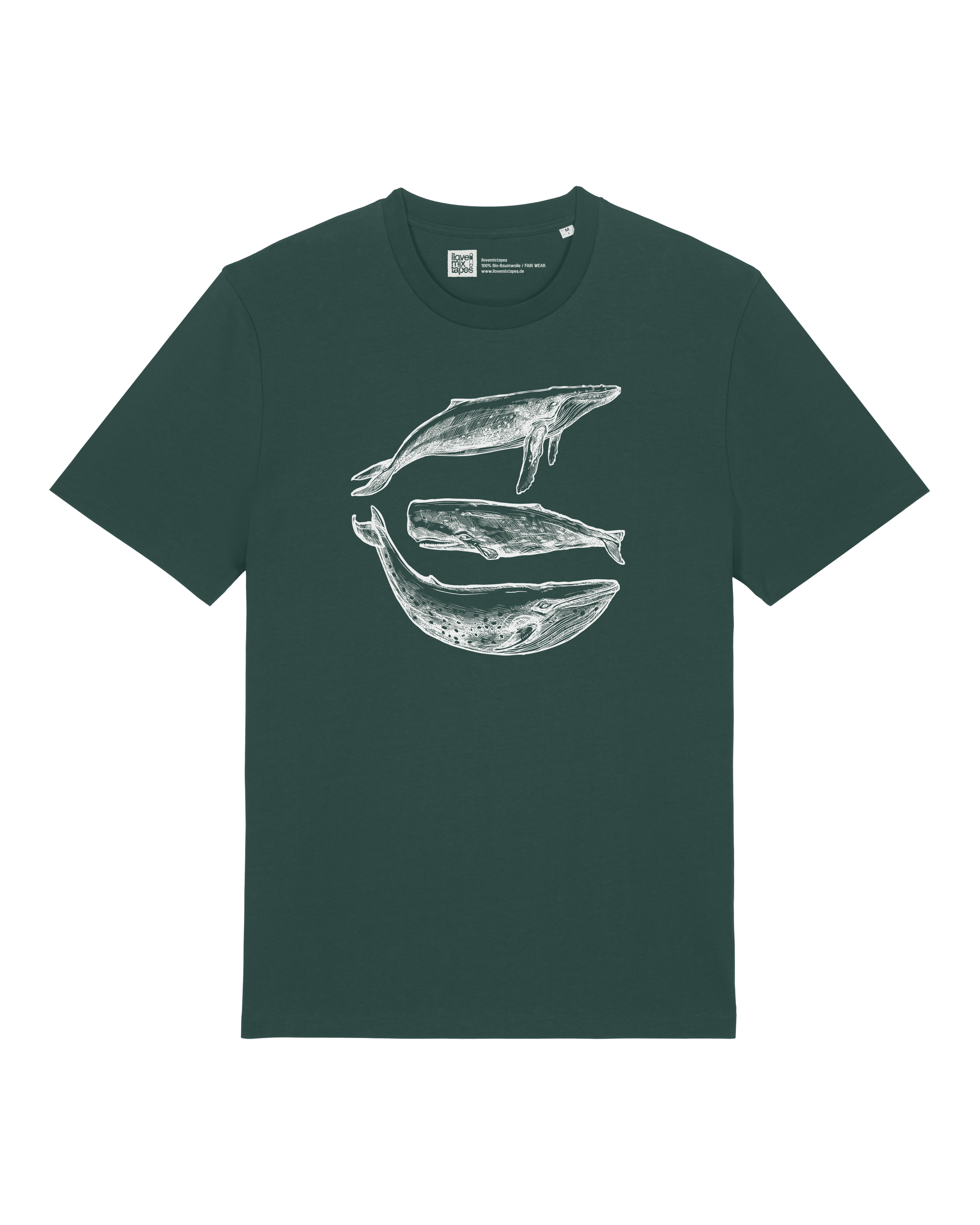 • Motiv: Drei handgezeichnete Wale (großer Frontdruck)