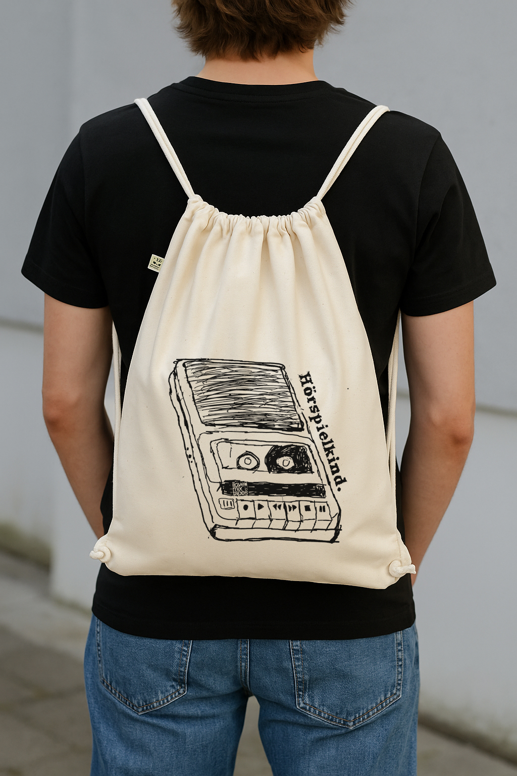 Egal ob beim Einkaufen, auf dem Weg zur Arbeit oder beim Festival: Der Turnbeutel "Hörspielkind" ist dein stylischer Alltagsbegleiter mit Retro-Charme – nachhaltig produziert und mit Liebe zum Detail gestaltet.