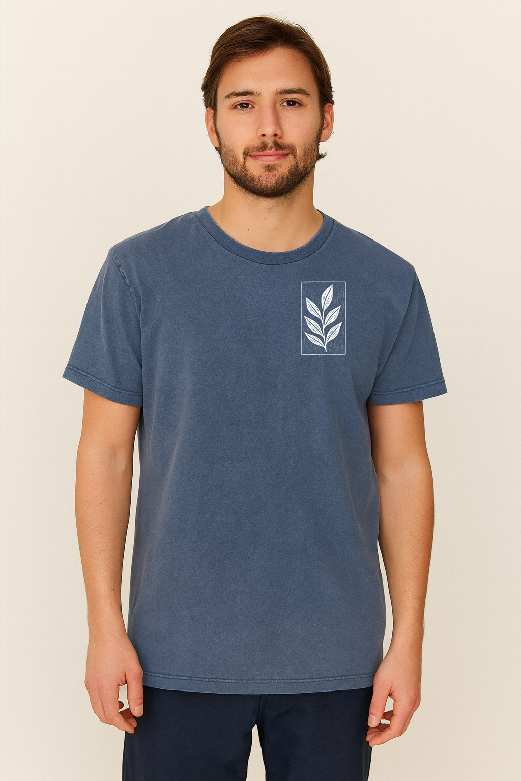 Das Unisex T-Shirt „Der Zweig“ in Stone Washed Denim Blue verbindet minimalistisches Naturdesign mit nachhaltiger Qualität. Das feine, weiße Zweigmotiv wird per Siebdrucktransfer aufgebracht und überzeugt durch klare Linien und Langlebigkeit – farbbeständig und robust, auch nach vielen Wäschen.